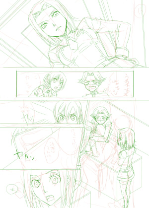 ネームも出来ていないのに描きたいものを描いていたせいか、この絵、足元まで描いてあったのですが日記用に遊んで切り取った↑をうっかり上書き保存してしまった……(ガクリ)